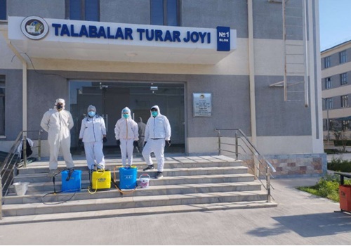 Universitet hududida muntazam ravishda dezinfeksiya ishlari olib borildi. Xizmat sifati yuqori, ishlar belgilangan vaqtida va sanitariya talablariga to‘liq rioya qilingan holda bajarildi.